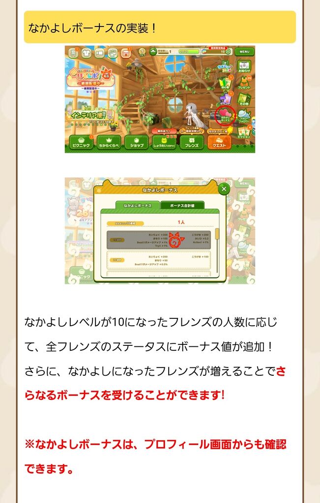 なかよしボーナス? 迷宮ゾーンみたいなボーナス補正値がなかよしレベル上げるとつくのだな。