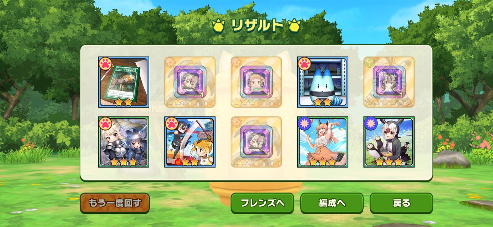 【けもフレ3】「謹賀新年無料10連」の結果を書く場所(6日目) 2026年01月06日 カテゴリ:けもフレ3<総合>しょうたい・ガチャ報告 レスが無いので、結果を自由に書いていってください管理人のつぶやきガチャ運が収束してきた感 「けもフレ3<総合>」 カテゴリの最新記事 コメント コメント一覧 (7) 1. 名無しの隊長さん 2026年01月06日 12:30 新規でオジロスナギツネちゃん来た!! 0 kemo3news がしました 2. 名無しの隊長さん 2026年01月06日 13:23 何の成果もないのだ 0 kemo3news がしました 3. 名無しの隊長さん 2026年01月06日 16:01 アカカンしか来なかったのだ 0 kemo3news がしました 4. 名無しの隊長さん 2026年01月06日 16:10 未だに星4フレンズ引けてない… ま…まだ慌てる時間じゃないのだ……(焦) 0 kemo3news がしました 5. 名無しの隊長さん 2026年01月06日 17:45 演出0からのnewcomerニホンカワウソはビックリするからもっと来いなのだ 0 kemo3news がしました 6. 名無しの隊長さん 2026年01月06日 19:02 今日の☆4はフォト×2だったのだ。 0 kemo3news がしました 7. 名無しの隊長さん1 2026年01月06日 23:23 ようやく1体きた、なんとかまあ安心かな 0 kemo3news がしました コメントする コメントフォーム 名前 コメント 記事の評価 リセット リセット 顔 星 情報を記憶 コメントを投稿する
