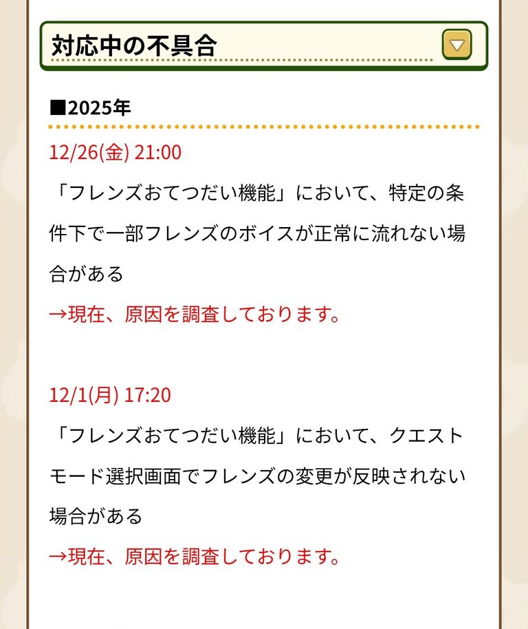 バグは直ってないけれど変更ボタン→フレンズ選択→変更完了を一回やった後